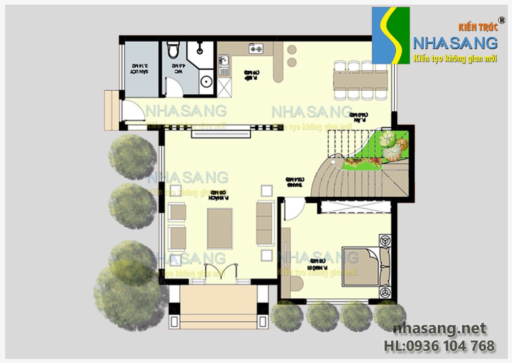 Mặt bằng tầng 1 Hồ sơ thiết kế bao gồm Phối cảnh 3D các góc công trình, phối cảnh 3D tổng thể, mặt bằng công năng các tầng, mặt đứng, mặt cắt, bản vẽ chi tiết từng phần... Bản vẽ thiết kế kết cấu móng, kết cấu thân nhà, thiết kế điện nước, tiểu cảnh sân vườn, chi tiết cổng, tường rào... Các bản vẽ theo quy định của kiến trúc Nhà Sang xemtại đây. Toàn bộ hồ sơ thiết kế công năng các phòng và kiến trúc đều được tư vấn hợp theo Phong thủy và tuổi của chủ đầu tư. Kích thước các phòng, chiều cao nhà và kích thước cửa đều theo kích thước phong thủy. Liên hệ tư vấn thiết kế: Hotline: 0936 104 768 |