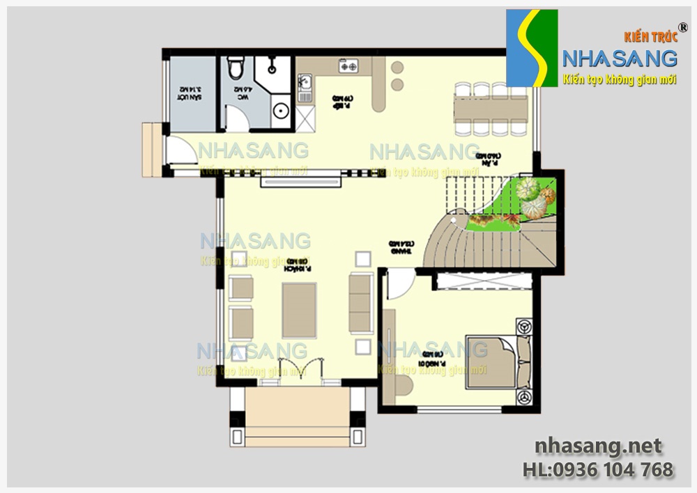 Mặt bằng tầng 1 Hồ sơ thiết kế bao gồm Phối cảnh 3D các góc công trình, phối cảnh 3D tổng thể, mặt bằng công năng các tầng, mặt đứng, mặt cắt, bản vẽ chi tiết từng phần... Bản vẽ thiết kế kết cấu móng, kết cấu thân nhà, thiết kế điện nước, tiểu cảnh sân vườn, chi tiết cổng, tường rào... Các bản vẽ theo quy định của kiến trúc Nhà Sang xem tại đây. Toàn bộ hồ sơ thiết kế công năng các phòng và kiến trúc đều được tư vấn hợp theo Phong thủy và tuổi của chủ đầu tư. Kích thước các phòng, chiều cao nhà và kích thước cửa đều theo kích thước phong thủy. Liên hệ tư vấn thiết kế: Hotline: 0936 104 768