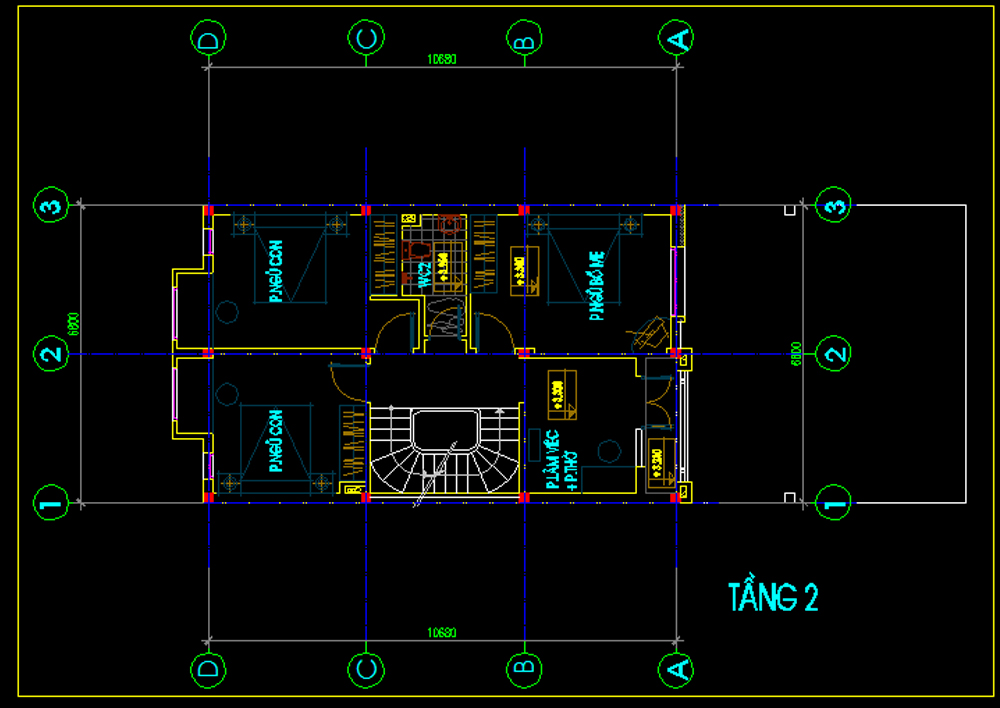 Biệt thự kiểu nhà Ống BT14066 chú Phát Hà nội - Mặt bằng tầng 2