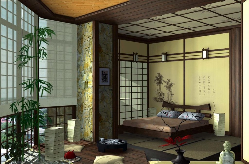 Trong quan niệm của người dân Nhật Bản, phòng ngủ là nơi để nghỉ ngơi, vì thế không gian này không cần có quá nhiều đồ đạc, đặc biệt là các thiết bị điện tử. Thay vào đó, thiết kế phòng ngủ ưu tiên sự đơn giản, tiện lợi, đồng điệu và các giá trị cảm nhận. Ngoài ra, người Nhật còn cho rằng nhà ở cũng như một sinh vật sống, nếu những vật dụng trong nhà đạt được sự hài hoà thì gia chủ có thể được bảo vệ khỏi khó khăn, bệnh tật.
