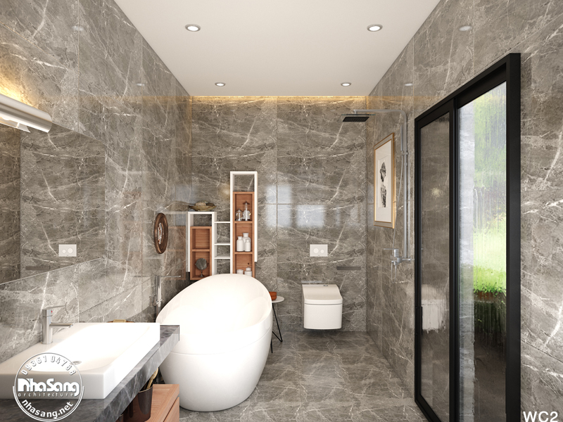 Cửa lùa khung nhôm xingfa kính phòng vệ sinh tiết kiệm diện tích