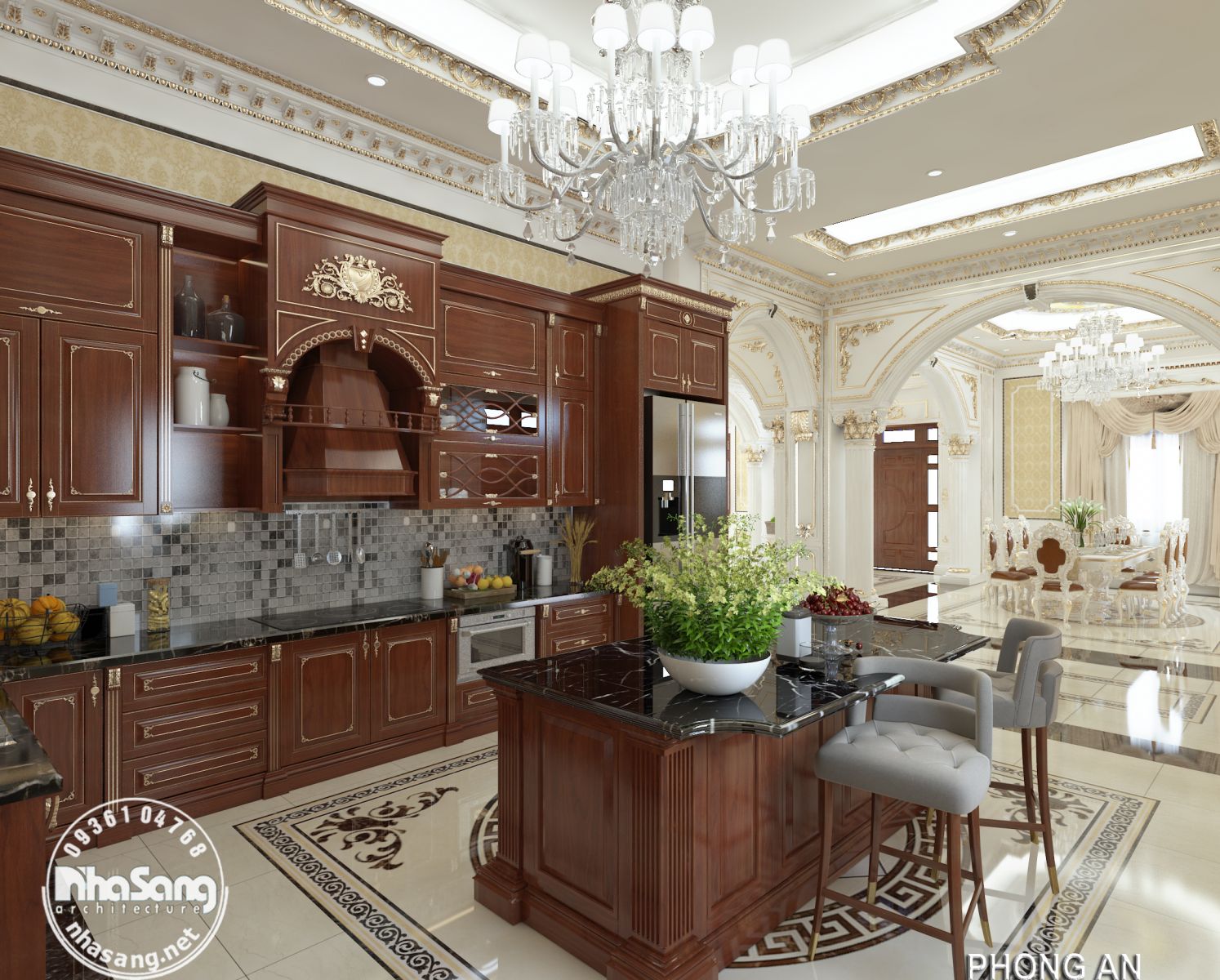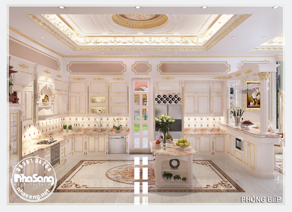 Bàn đảo xuất hiện trong khu vực bếp ăn làm cho không gian này trở nên đa năng và có tính linh hoạt hơn. Ngoài những công dụng chính đã nêu trên, bàn đảo còn có thể tận dụng phần chân bàn làm hộc tủ để đồ nấu nướng, và trưng bày những chậu cây mini nhỏ xinh làm bếp ăn thân thiện hơn với môi trường.
