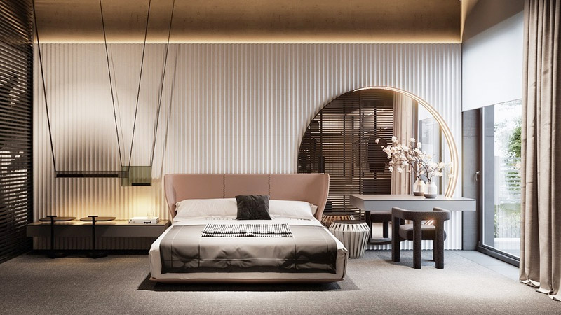 Một số gam màu trầm cũng được sử dụng, giúp tạo một không gian lắng đọng hơn một chút, yên bình hơn một chút. Màu sắc đôi khi còn được quyết định bởi sở thích của chủ nhân phòng ngủ. Khi hoạt động và nghỉ ngơi trong những căn phòng này, chủ nhân sẽ cảm thấy dễ chịu hơn, dễ dàng đi vào giấc ngủ sâu và êm ái. Dù lựa chọn màu nào, nhưng màu sắc phòng ngủ kiểu Hàn Quốc vẫn luôn giữ một ngôn ngữ kiến trúc trọn vẻ ấm áp, ngọt ngào, phù hợp với nhiều cách trang trí khác nhau.