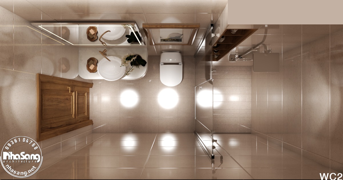 Thứ bảy, không gộp chung nhà vệ sinh, phòng tắm, lavabo rửa mặt. Điều này gây ảnh hưởng đến việc dùng chung khiến chất lượng vệ sinh bị giảm mạnh. Để giải quyết điều này, bạn có thể chia đôi hoặc dùng rèm che, vách ngăn đôi.