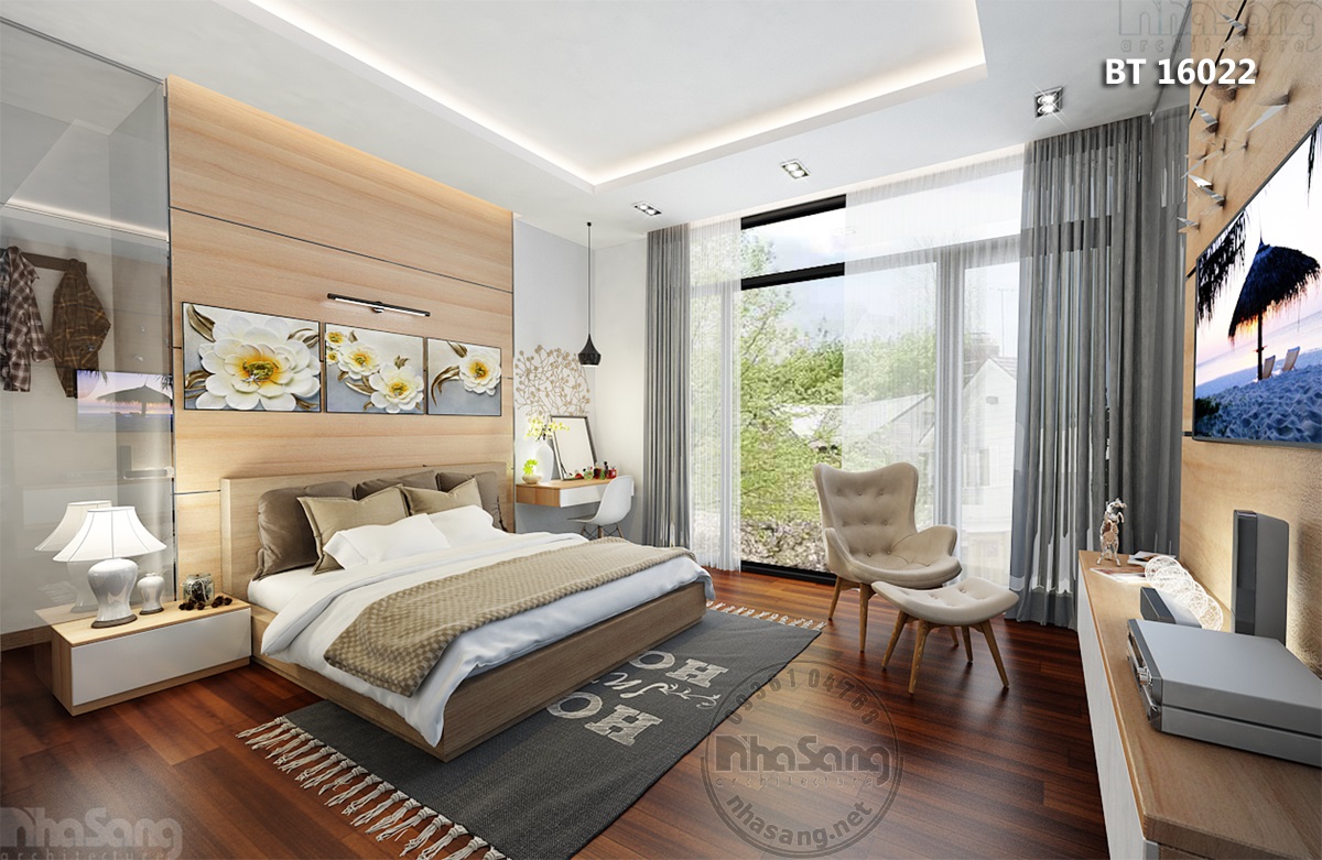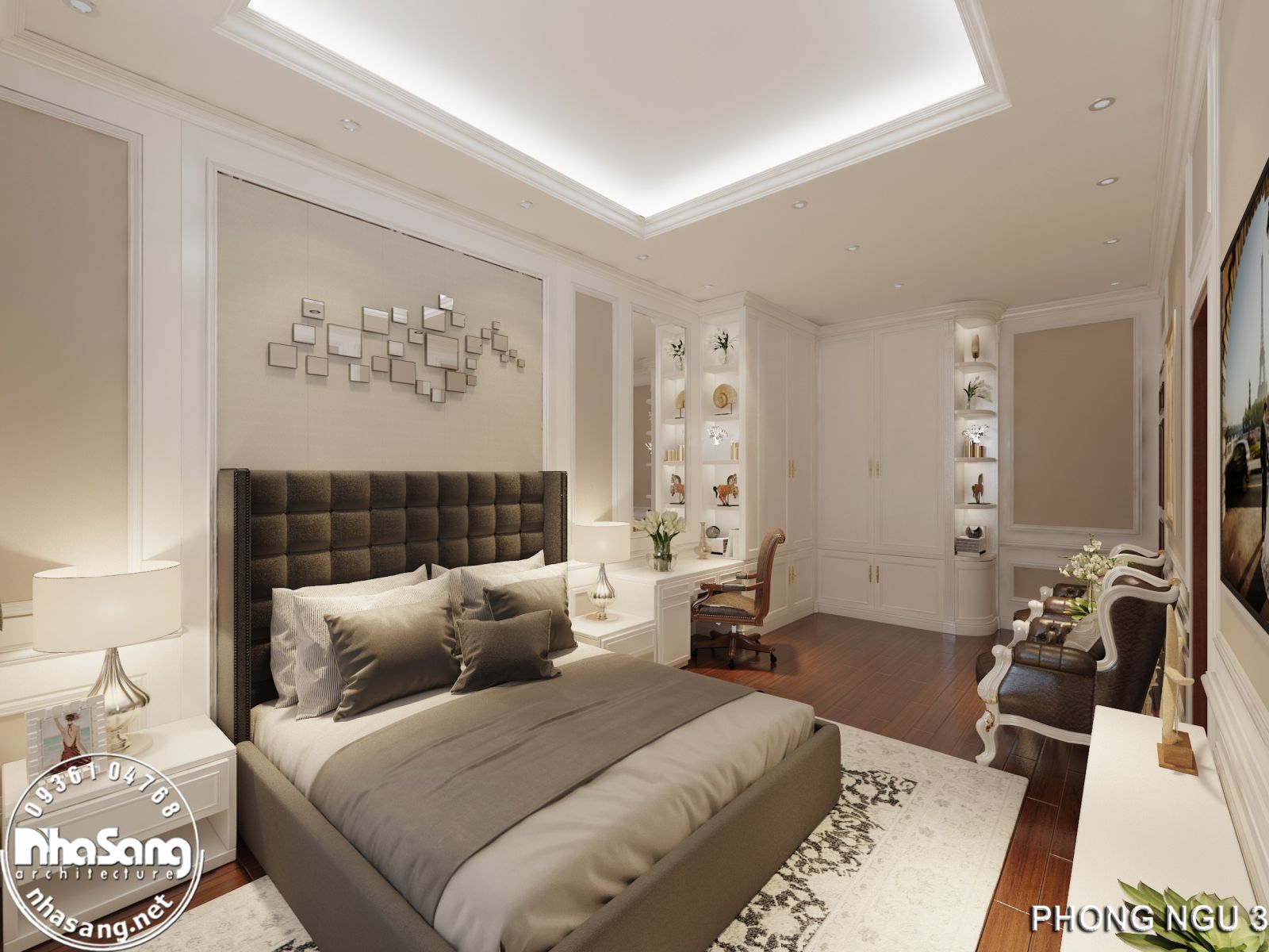 Sắp đặt nội thất phòng ngủ mệnh Kim tone màu trắng - màu bản mệnh kết hợp ghi xám tạo điểm nhấn thanh lịch hiện đại