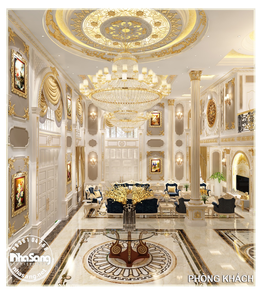 Phòng khách phong cách cổ điển lấy cảm hứng từ cung điện hoàng gia quý tộc Anh, dễ gây hiểu lầm về một không gian tiếp khách phô trương choáng ngợp những đồ quý giá dát vàng hay bộ sưu tập châu báu. Đó là quan niệm sai lầm. Phòng khách cổ điển ngày nay thực chất là sự kế thừa tinh hoa quý tộc với sự phóng khoáng hiện đại, giảm thiểu tối đa các chi tiết rườm rà để đem đến một không gian sang trọng, tinh tế.