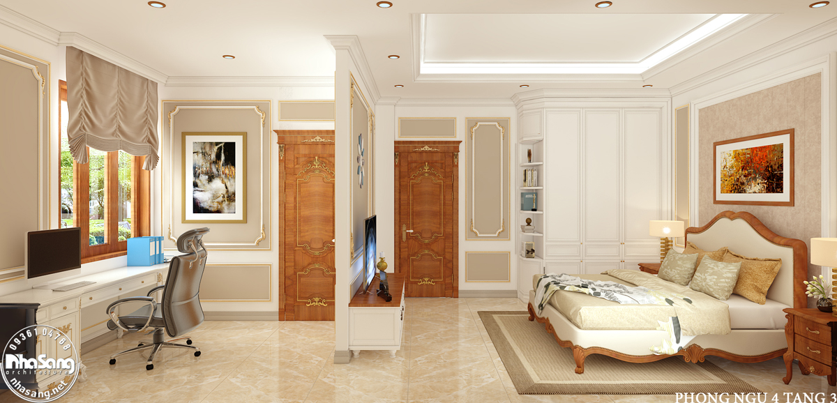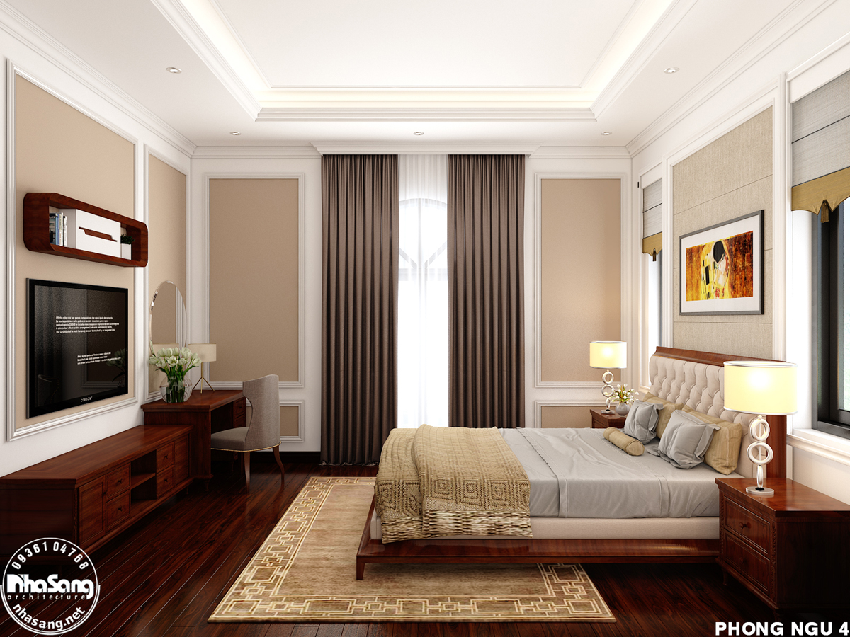 Không phải cứ cầu kỳ thì mới có thể mang đến nét đẹp quý phái mà đôi khi sự thanh tao của các điểm nhấn nhẹ nhàng trên các hệ vách, đường cong hay sự cân xứng đáng kinh ngạc của các mảng miếng đã tạo nên một sức quyến rũ riêng cho phong cách này. Với nét đẹp kế thừa tinh hoa cổ điển và kết hợp với những nét văn hóa của thời đại thì thiết kế phòng ngủ tân cổ điển đã chiếm trọn tình yêu của các gia đình hiện nay để mang đến một không gian tinh tế, đượm chút hoài niệm cổ điển nhưng vãn đầy tươi mới của hiện đại.