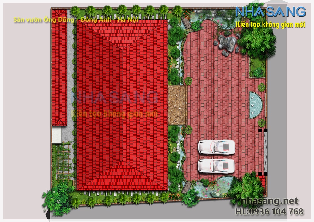 Phối cảnh tổng thể sân vườn nhà vườn Bắc Bộ