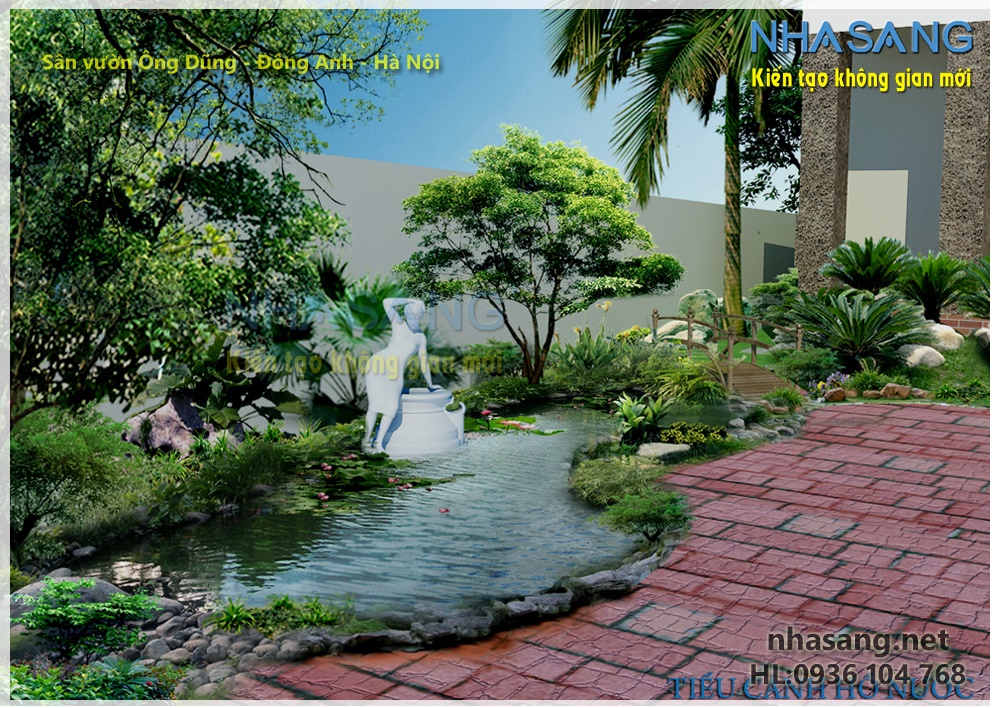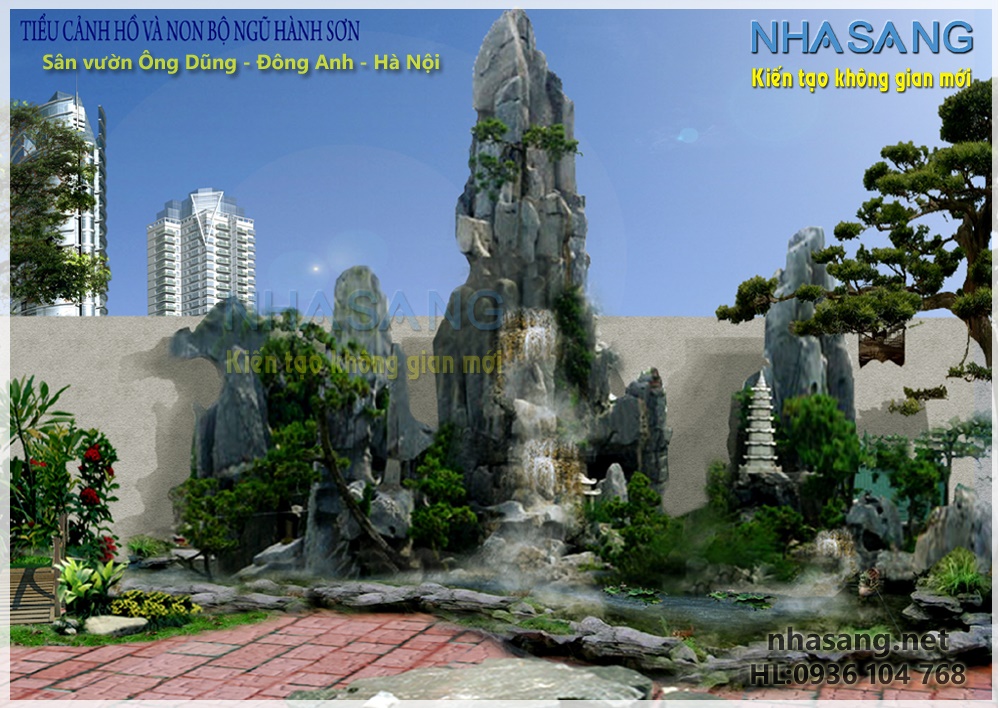 Thiết kế sân vườn với non bộ và hồ nước  NV14104