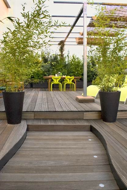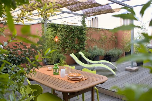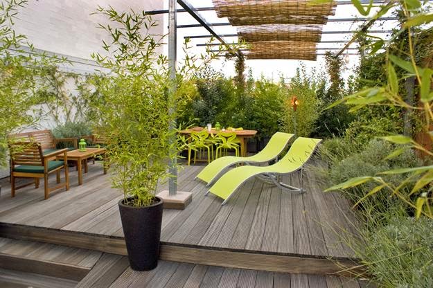 Khi kiến trúc sư cảnh quan thiết kế một khu vườn mái cho khách hàng của mình trên đỉnh một tòa nhà dân cư hiện đại , ý tưởng đầu tiên là thiết kế một không gian xanh "một không gian xanh thư giãn." Có thể tạo một không gian riêng tư nghỉ ngơi cuối ngày làm việc vât vả. không gian này có hàng chục ý tưởng tuyệt vời để loại bỏ cảm giác một sân thượng bị lãng quên, phủ lấp các mảng tường bê tông, xi măng và chống nóng tuyệt vời.