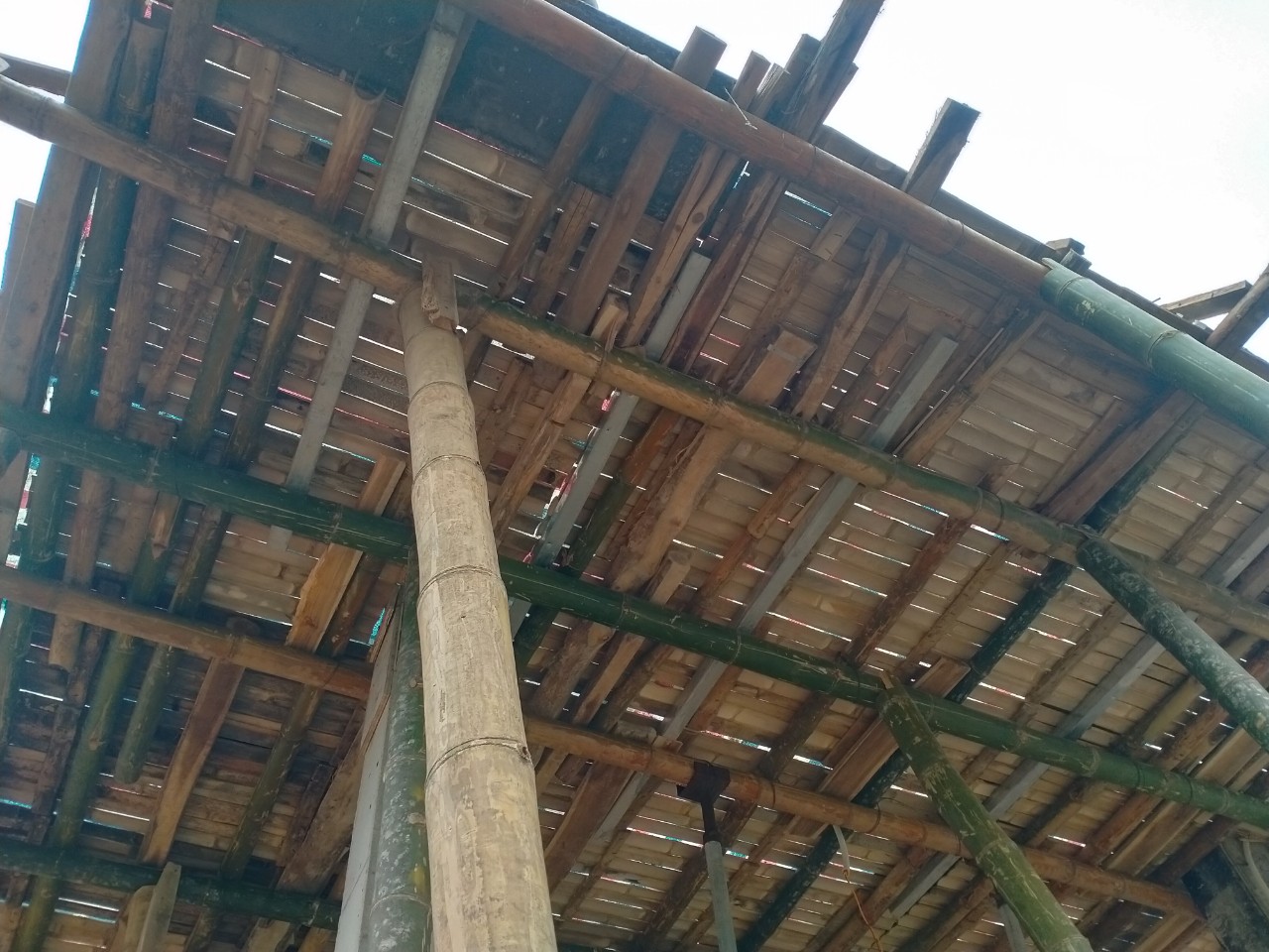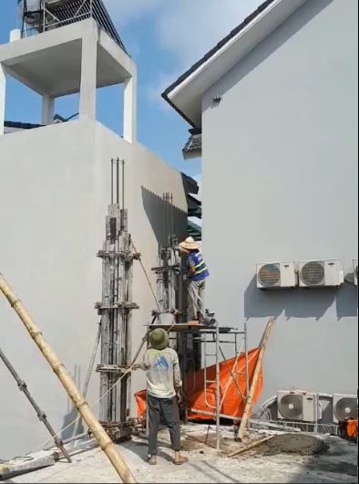 Dựng dàn giáo và lắp ghép cốp pha đợi đổ bê tông mái tầng 1